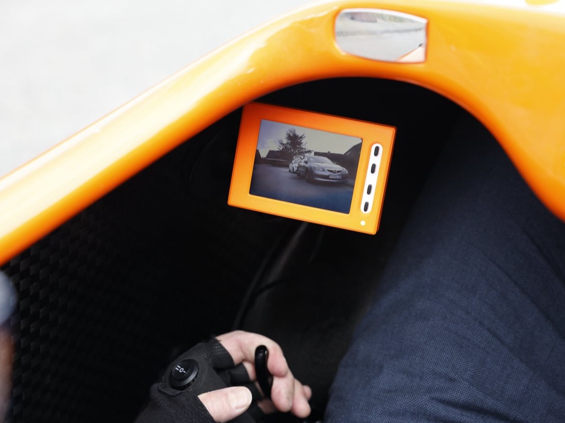 Auf einem Display am Fahrradlenker sehen Sie bequem, was hinter ihnen geschieht und behalten beim Fahren stets den Überblick.